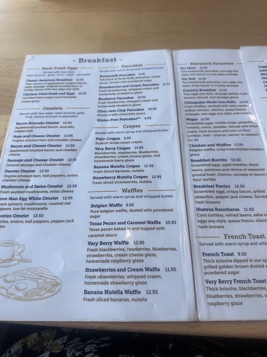 The Starwood Cafe in Seagoville offers a straightforward and inviting menu that blends classic comfort foods with café favorites. Whether you're stopping by for a relaxed breakfast, a casual brunch, or a midday pick-me-up, the menu provides a variety of options suited to different moments of the day.