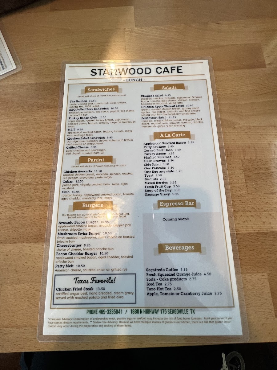 Starwood Cafe - Seagoville Menu
